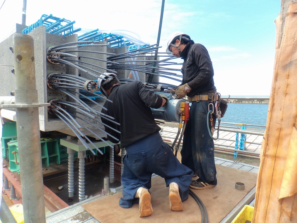 橋の構造にも様々なものがありますが、当社はプレストレストコンクリートと呼ばれる特殊な工法で施工します。